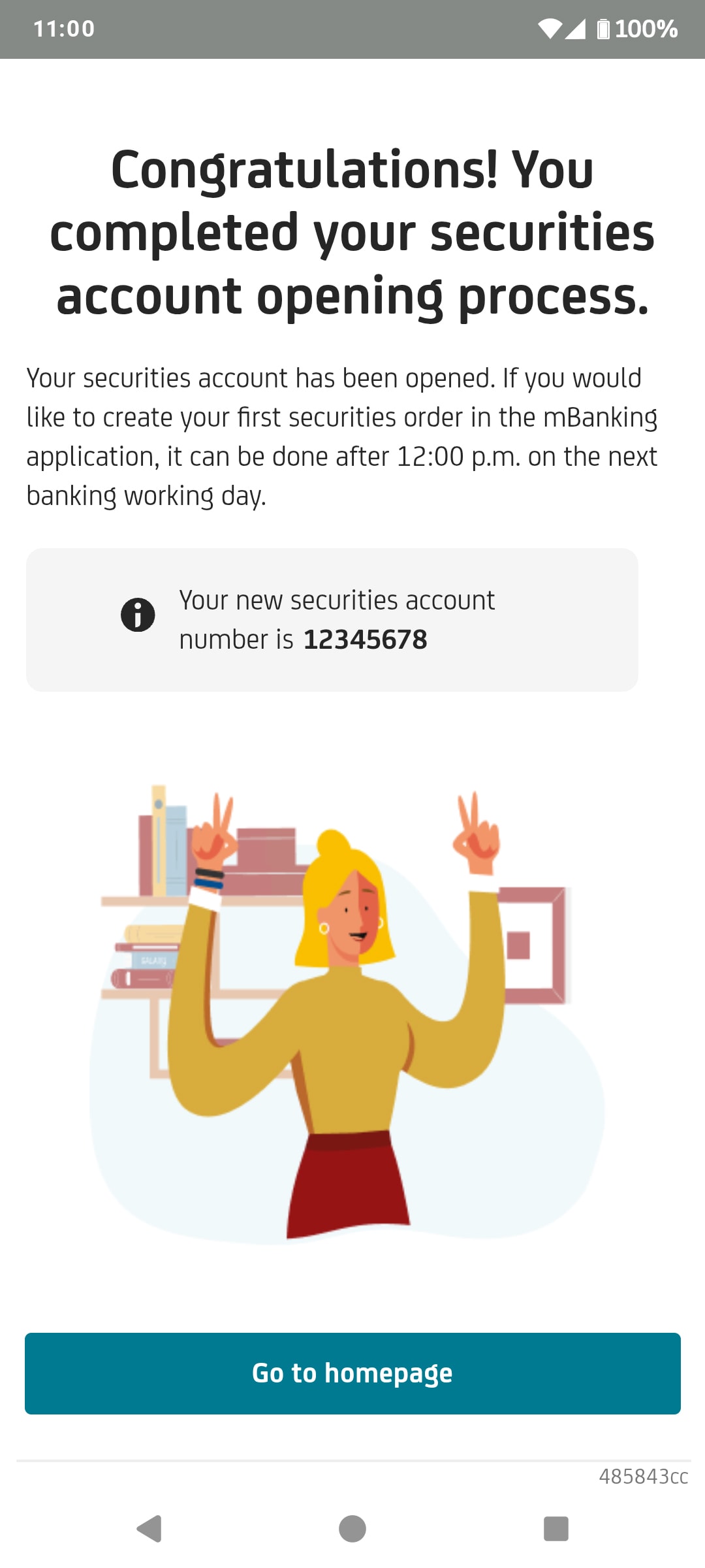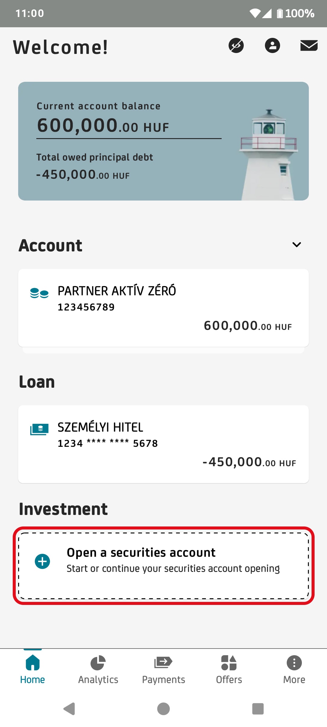 You can complete the securities account opening process between 4:00 am and 9:45 pm on the given day by clicking on the link in the e-mail we sent you or by tapping the Investment area on the mBanking home screen.