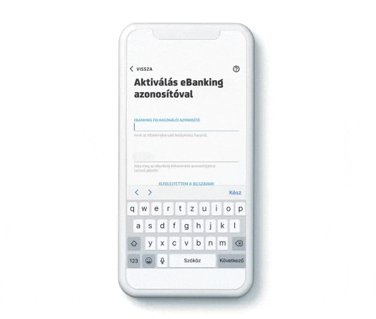 Telepítést és elindítást követően kattintson az aktiválni kívánt szolgáltatásra. Ha rendelkezik eBanking azonosítóval, adja meg felhasználónevét és jelszavát, ha nem, akkor az egyes pont alapján beszerzett felhasználói azonosítóját, majd mindkét esetben az SMS-ben kapott aktiváló kódra koppintva fejeződik be az azonosítása.